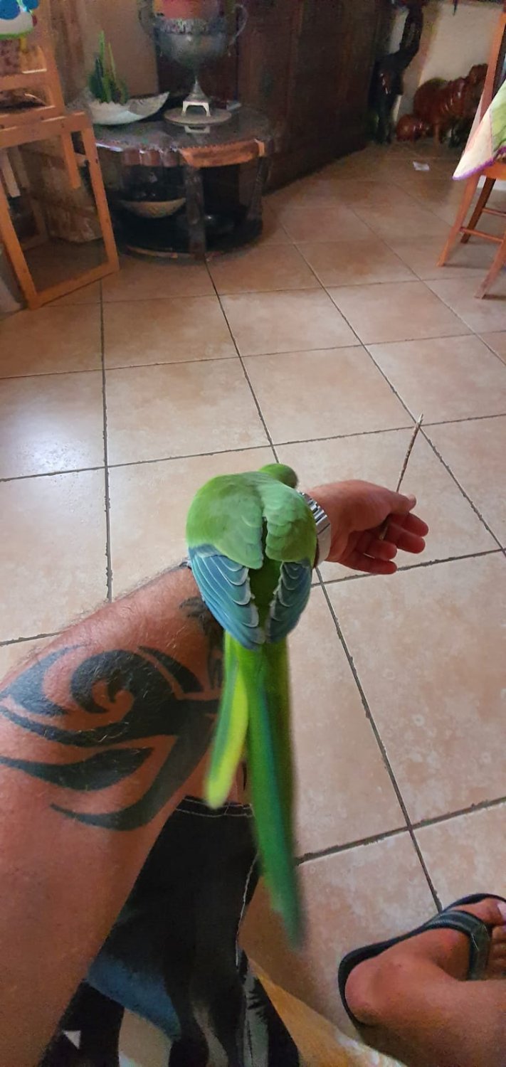 Tutti i consigli sono ben accetti, per il momento è ancora timido, ho iniziato l'addestramento di farlo salire sul dito quando sono vicino, lo premio con un pezzetto di spiga di panico. Apprezza. Per il resto, la maggior parte del tempo, la passa in due posti volando ogni tanto da uno all'altro. Questione bagnetto, per il momento nulla, ho riempito una bacinella d'acqua, messa a fianco ma nulla, bagnavo il dito per bagnargli le piume, ma nulla, oggi dovrebbero arrivarmi degli "spruzzini" Proverò così. Questione cibo,frutta e verdura, fino a ieri, gli davo pezzettini, li beccava per poi "sputarli" Ora, gli ho dato una carota intera, si diverte a mordicchiarla ma poi la butta ovunque, ho pensato che magari è così il modo che ha di mangiare, non saprei