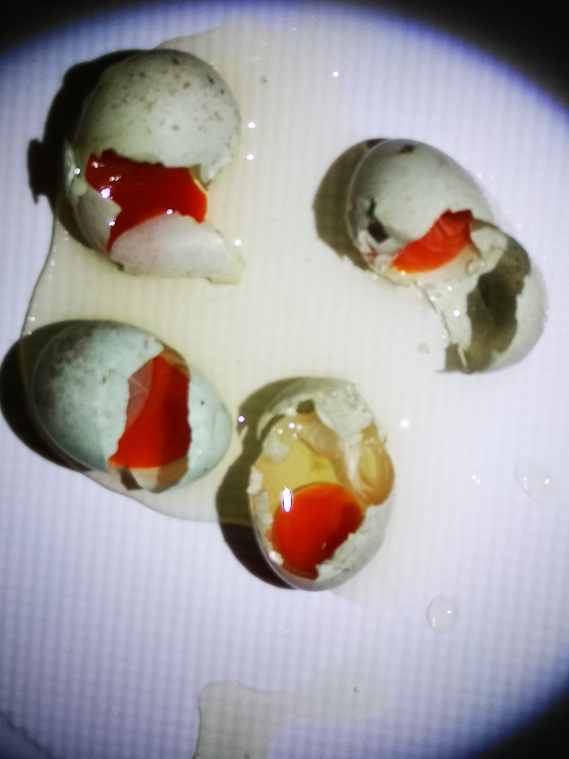 Penso che sia come dici tu, fecondi speratura ok ma subito dopo si e bloccato il processo di formazione ed si sono degradate fino a diventare cosi,le uova non feconde sono praticamente chiare senza tracce di sangue anche dopo tutto il periodo di cova