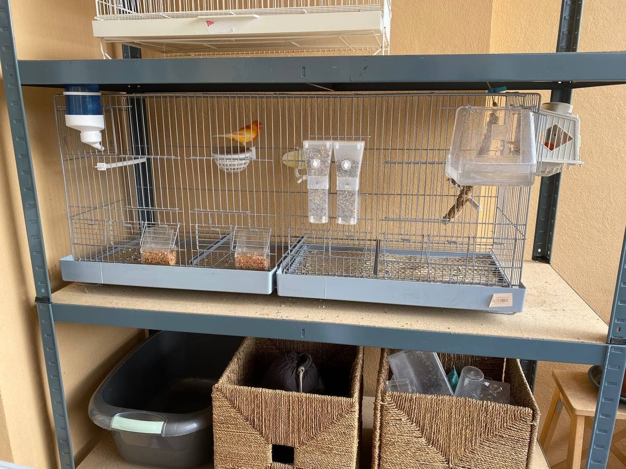 La gabbia da 1 metro che ho ora mi piace da morire perché ha ben 6 porte frontalei, di cui 4 a gigliottina a media altezza, sopra le mangiatoie, e 2 a molla in alto, all'ultimo "piano" della gabbia se idealmente la dividiamo in 3 sull'altezza.