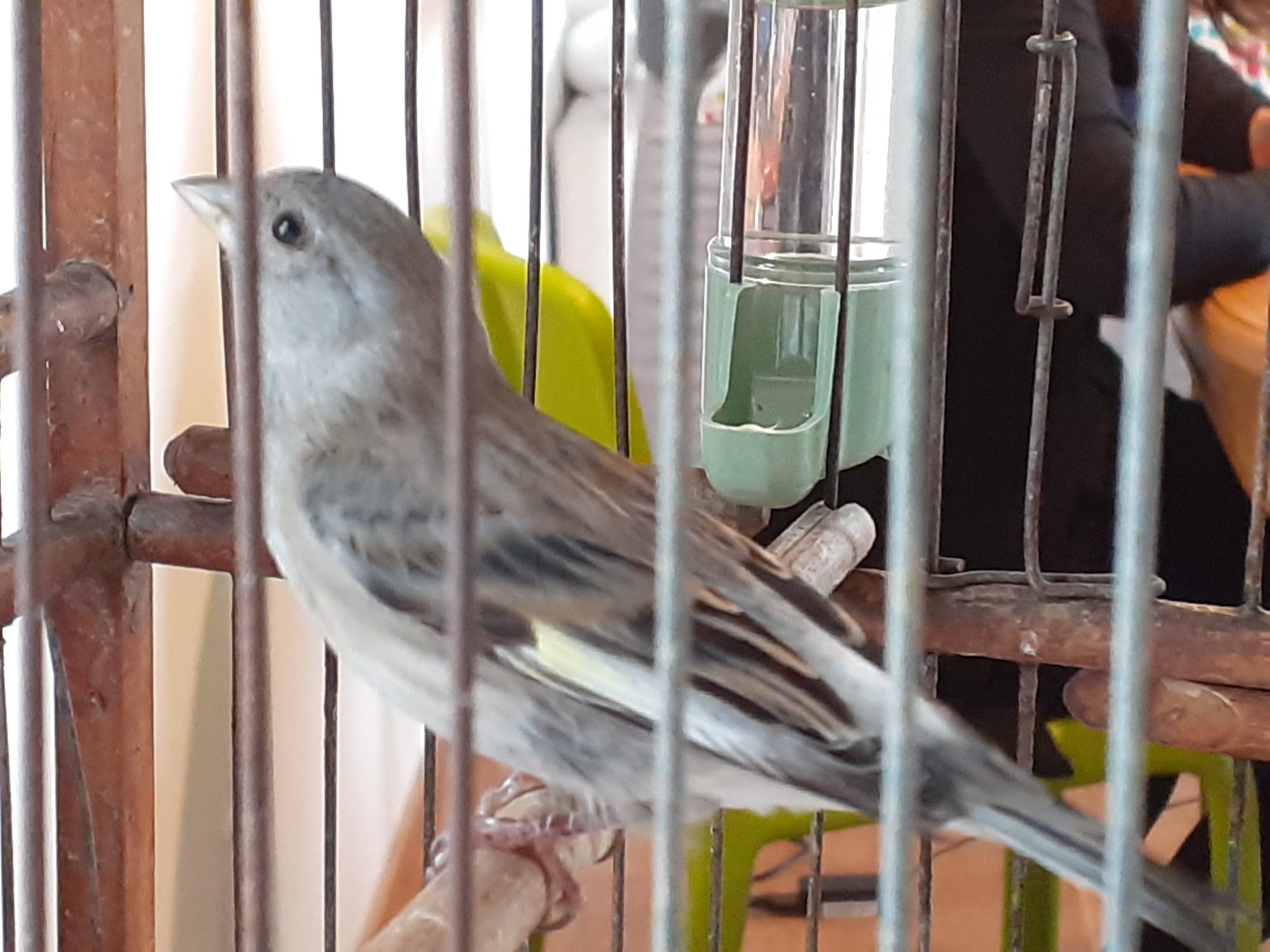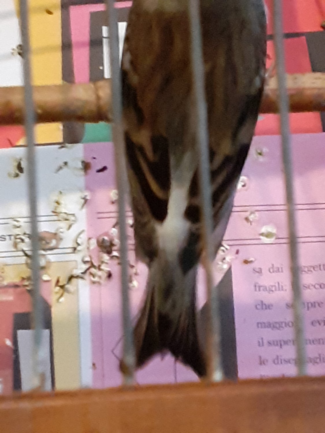 Due giorni fa dalla finestra è entrato questo uccellino che ha cominciato a volare intorno alla gabbia. Dopo un'oretta mio padre ha allestito una nuova gabbia e lui spontaneamente è entrato.