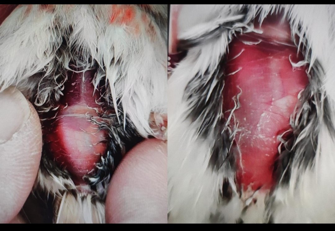 Ho comparato questa foto così si vede meglio prima e dopo 5 gg di cura si vede comunque che la macchia del fegato sembra molto più regredita e il ventre si sempre un pò rosso sintomo di infezione ancora in corso ma se notate molto più sgonfio di prima.
