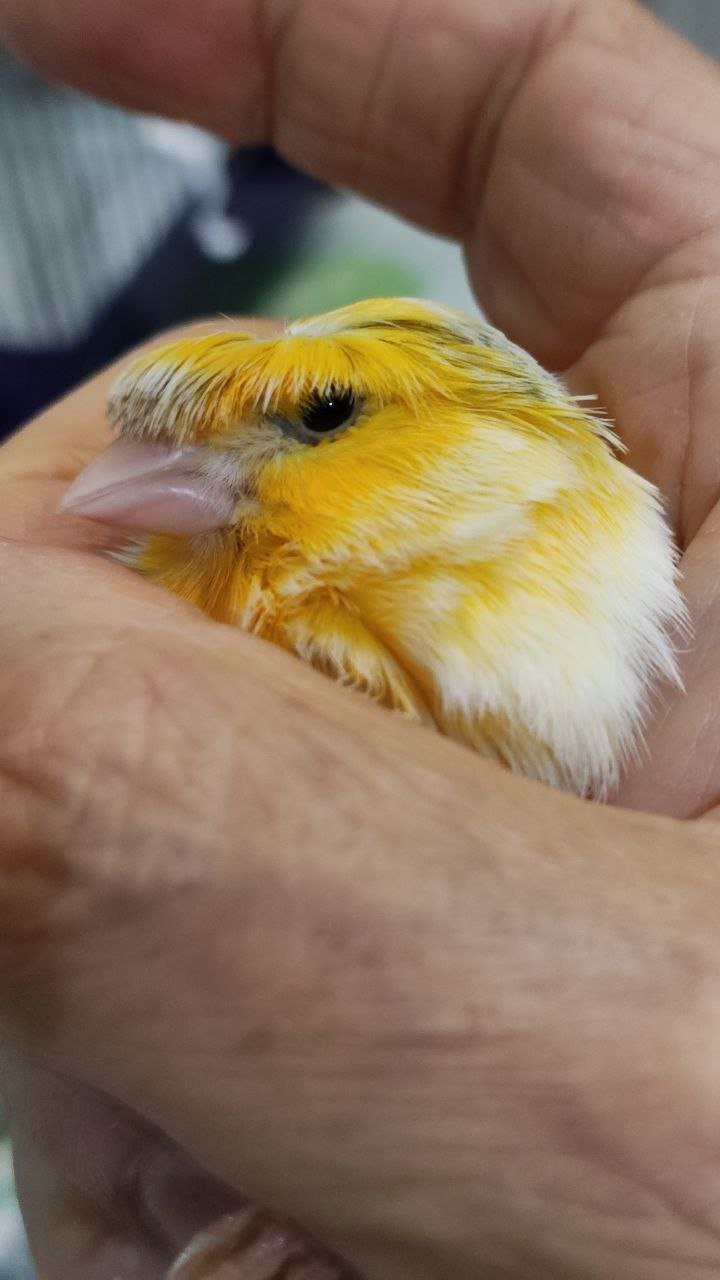 Non so se è rogna, in quanto già il precedente canarino, ormai in cielo, aveva una brutta rogna e stavo spennellando ivomec sulle zampe.