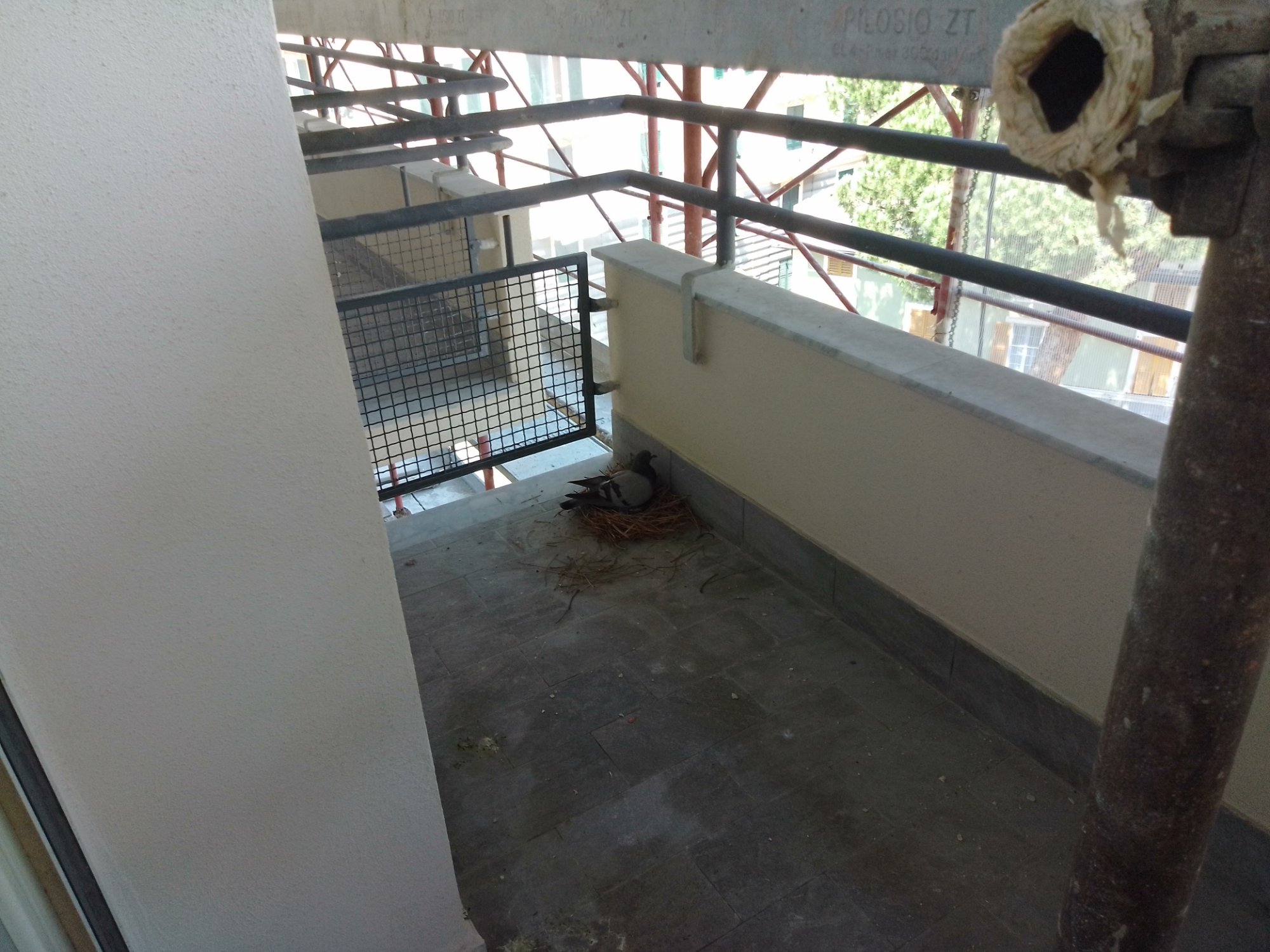 Buongiorno a tutti, mi sono appena iscritta. Vorrei il vostro aiuto: sul mio balcone un piccione ha appena fatto il nido e da qualche giorno sta covando. Ora con più insistenza perché il compagno porta i rametti e la mamma piccione lì sistema per bene attorno a lei. È un bel nido. Il grosso problema è che il terrazzo è zona di cantiere con tanto di impalcature!!! Il nido è sull' estremità esterna del balcone sotto le impalcature. A breve finiranno per dare il colore ai muri e per poi toglierle ( per ora gli operai sono sul lato lungo del palazzo , ma poi arriveranno su questo lato). Cosa faccio??? Mi piange il cuore a vedere con quanta cura il piccione si prende cura del nido. Se quando arriveranno a dare il colore ci fossero già le uova o peggio i pulcini che faccio???? Vi prego datemi un aiuto. Provo ad allegare una foto. Grazie mille a tutti.