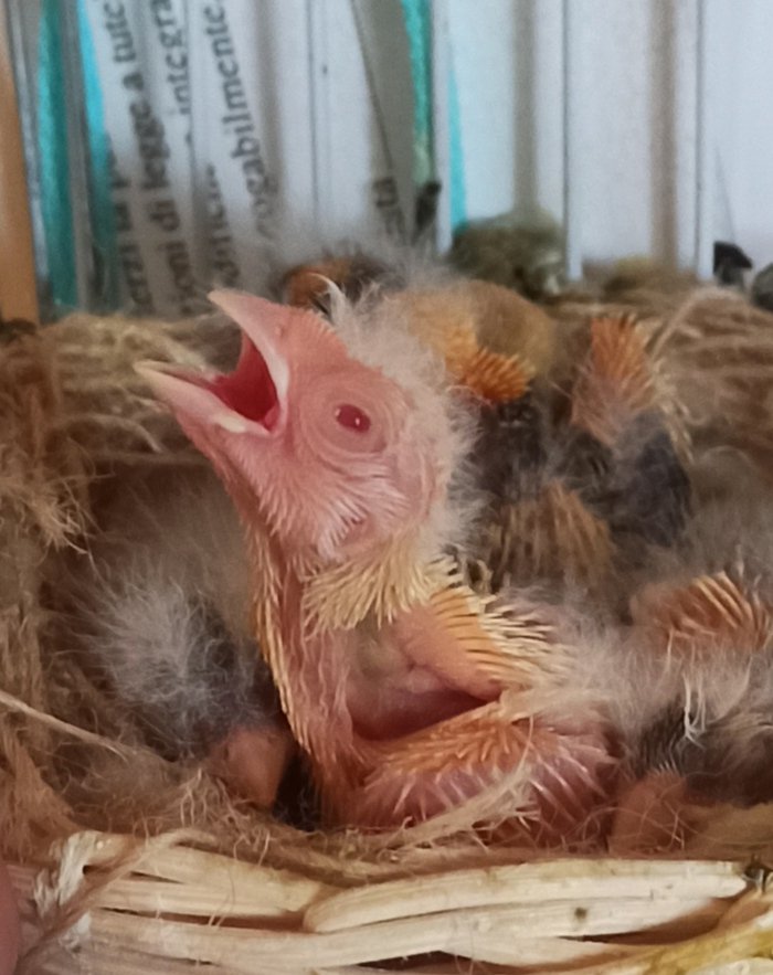 Buongiorno, sono al secondo anno e alla seconda e ultima cova di questa primavera, credo di aver trovato il giusto equilibrio: alimentazione ricca e varia / meno spreco possibile. Premesso che per iniziare ho scelto dei comuni pezzati, mi sembrava giusti muovermi a piccoli passi; noto una grande differenza già a partire da questa seconda cova nella crescita dei pulli, questi della foto sono nati tra il 7 e l'8 maggio, la foto è di ieri 13 maggio. Per quanto sia possibile capirlo da una foto, volevo chiedere un vostro parere a riguardo, vi sembra che i tempi siano rispettati? In caso contrario mi sposterò nella sezione alimentazione e chiederò chiarimenti ulteriori. Grazie in anticipo a chi risponderà.