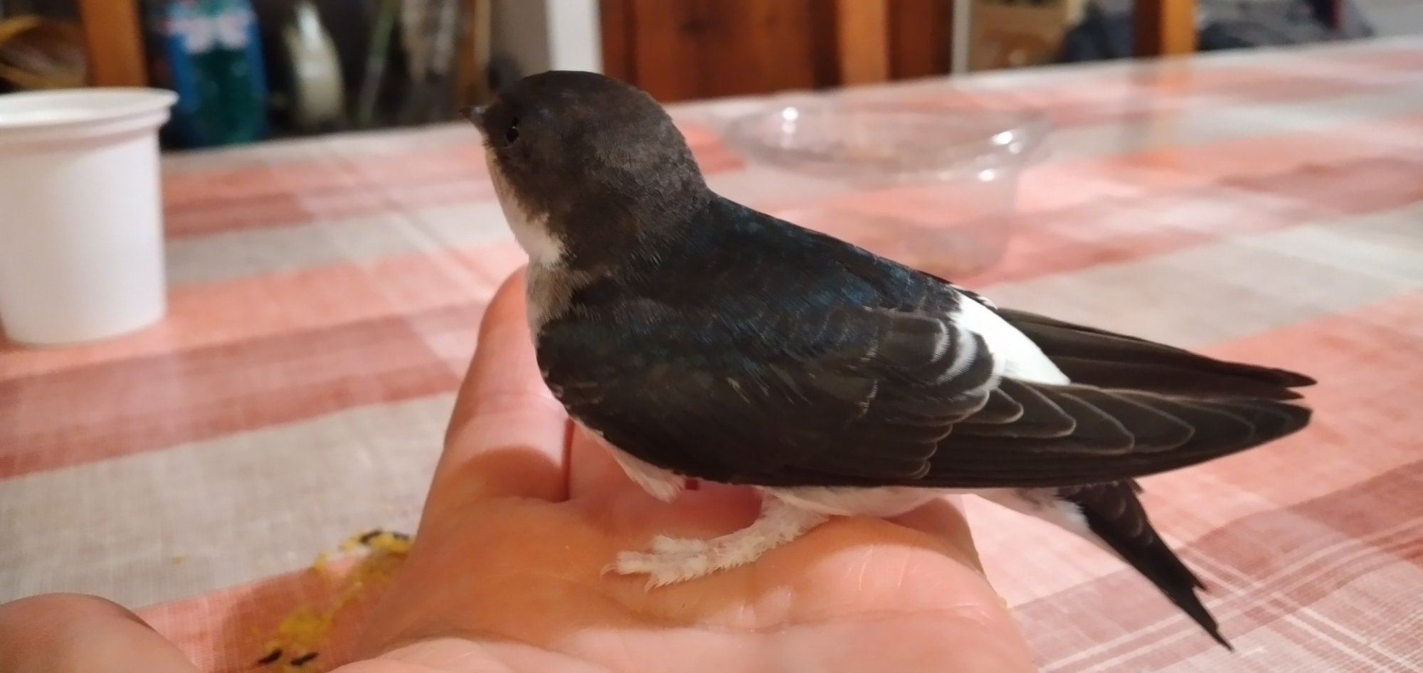 Tenevamo d'occhio i sorvoli di altri balestrucci, che di solito arrivano di mattina e di sera. Potrebbero anche essere i suoi familiari che stanno in zona per insegnare alla prima nidiata dove è il nido.
