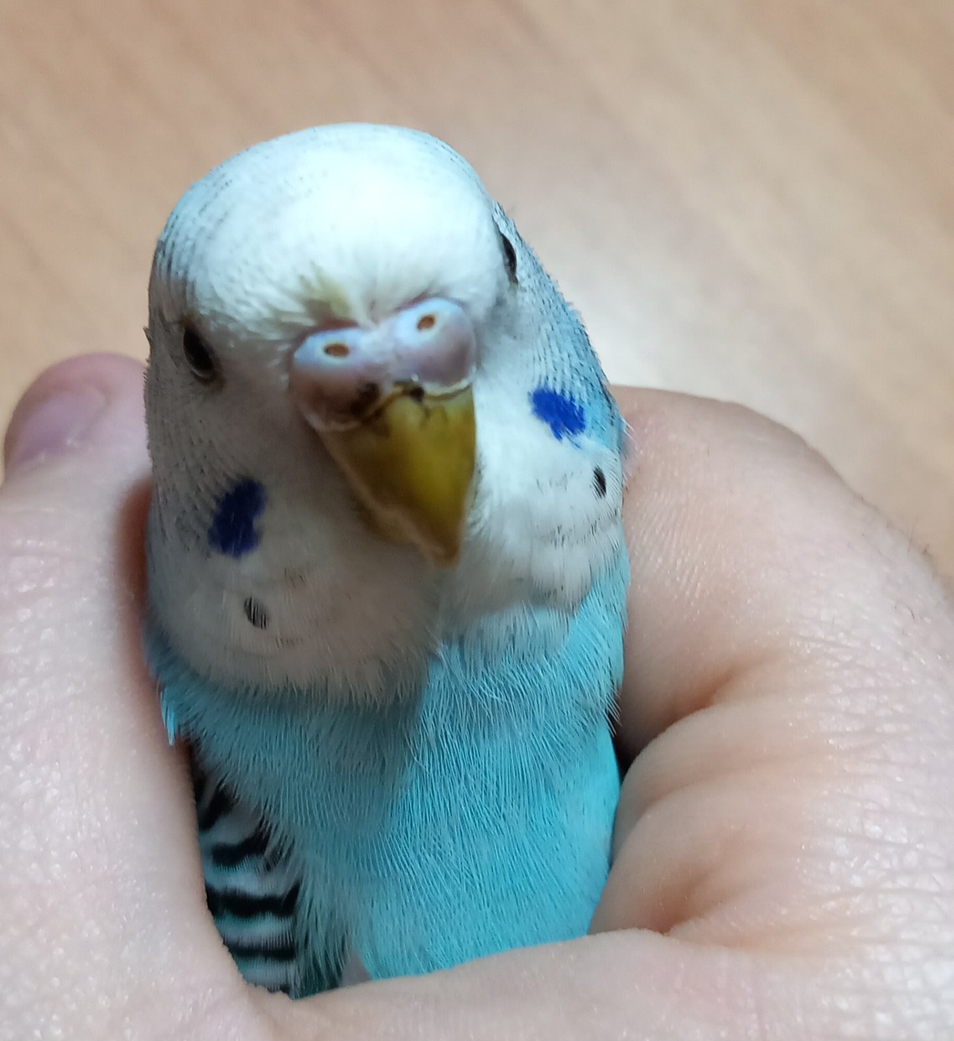 A me sembra femmina, in età riproduttiva la cera dovrebbe diventare marrone/rossiccia e rugosa. Non dovrebbe essere giovanissima in quanto le righette sulla fronte sono abbastanza staccate ( i cuccioli le hanno quasi vicine agli occhi.