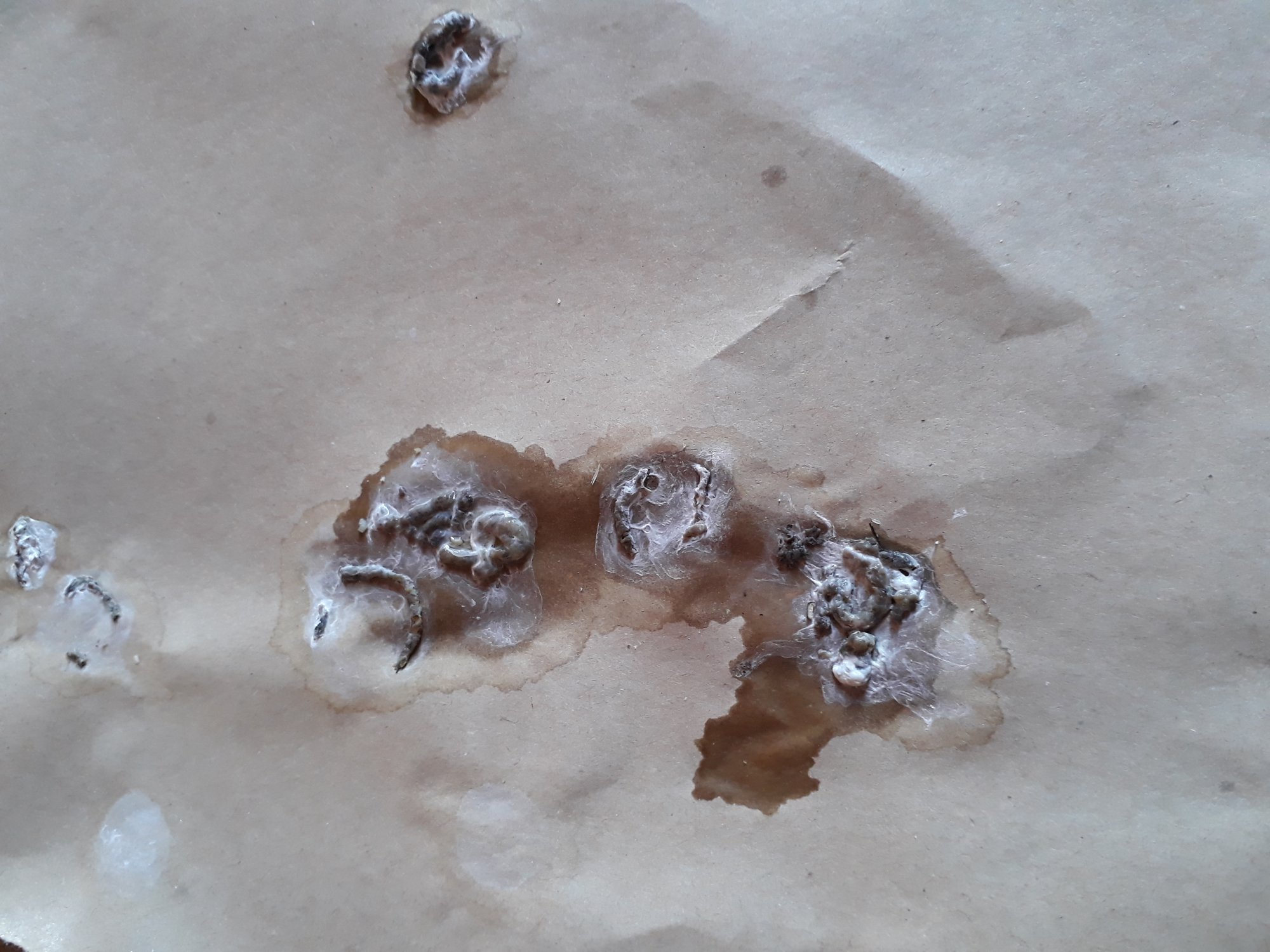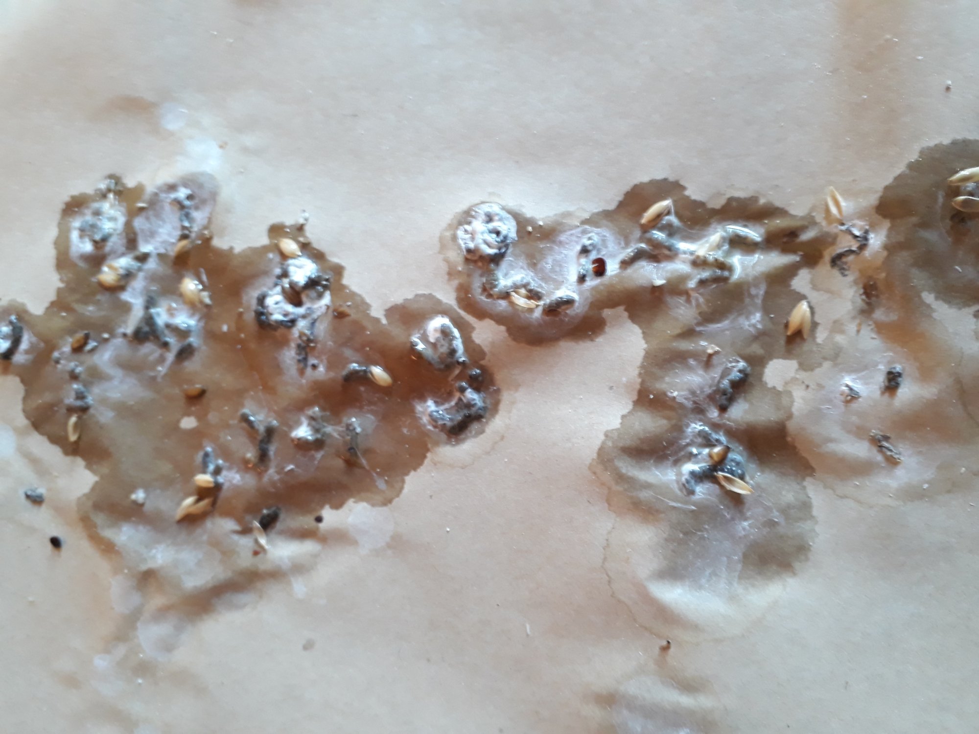 Ti aggiorno in merito allo stato di salute della canarina che era un Po gonfia, dopo due giorni con acqua e aglio e altri due giorni con acqua e limone e con alimentazione sol con T5, questo è il risultato delle feci di oggi.