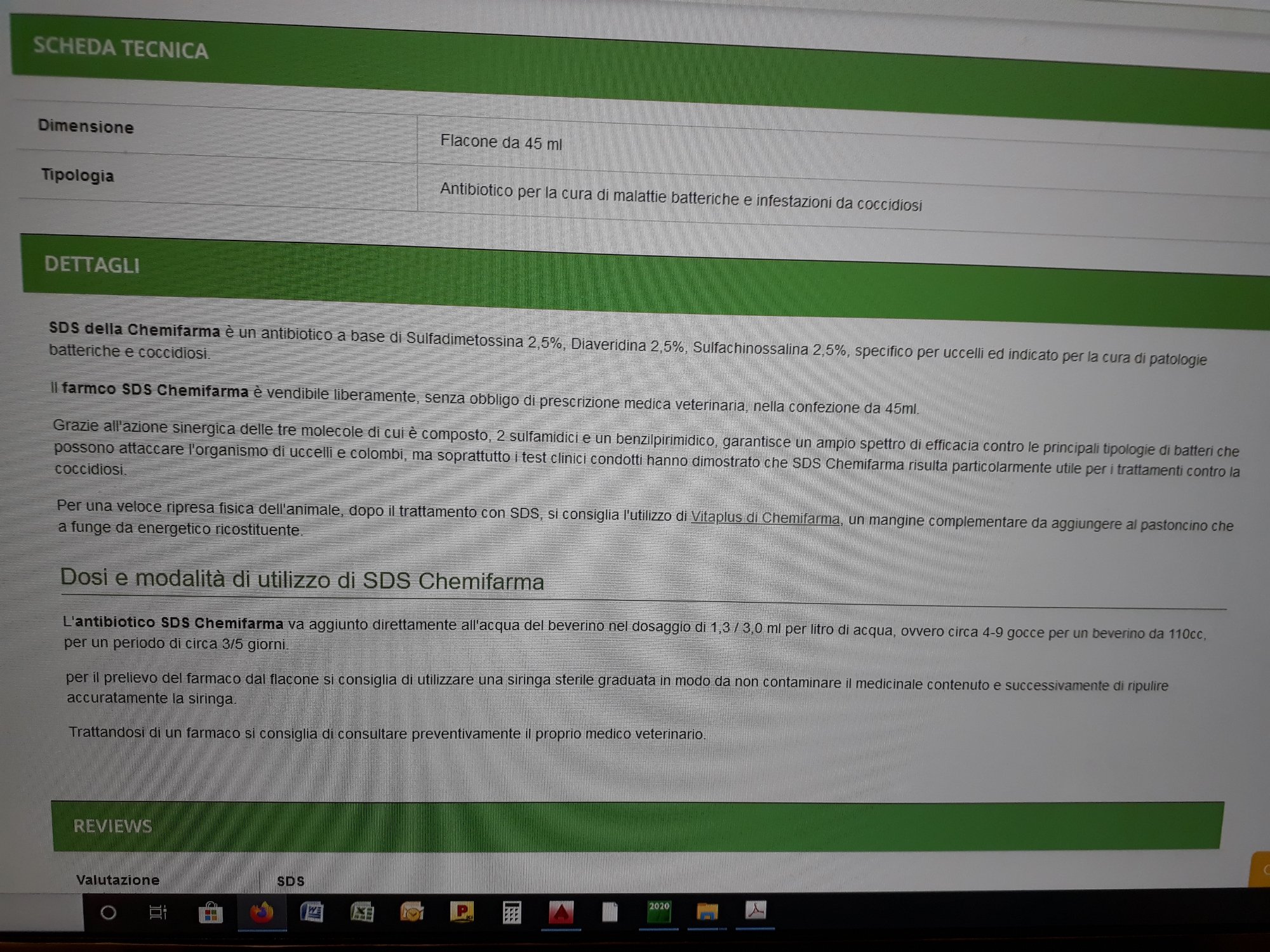 Se ritieni che sia necessaria una terapia antibiotica, in alternativa al bimixin, io sarei già in possesso del SDS della chemifarma che a mio modesto parere sia abbastanza indicato perché oltre ad essere anti coccidiosi ha altri principi attivi ad ampio spettro che andrebbe a combattere ulteriori ceppi batterici intestinali che potrebbe avere....comunque mi fido della tua esperienza.