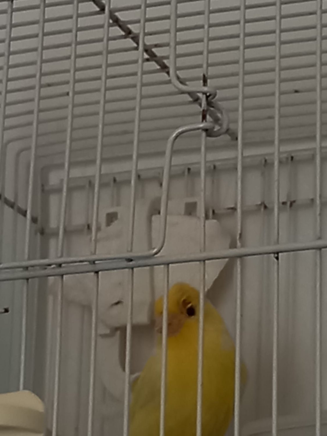 Ecco la mia canarina al 6'giorno di terapia con flagyl, sta migliorando, si sta sgonfiando la parte e stanno ricrescendo le piume proprio intorno all'occhio. Domani inizio a mettere la pomata