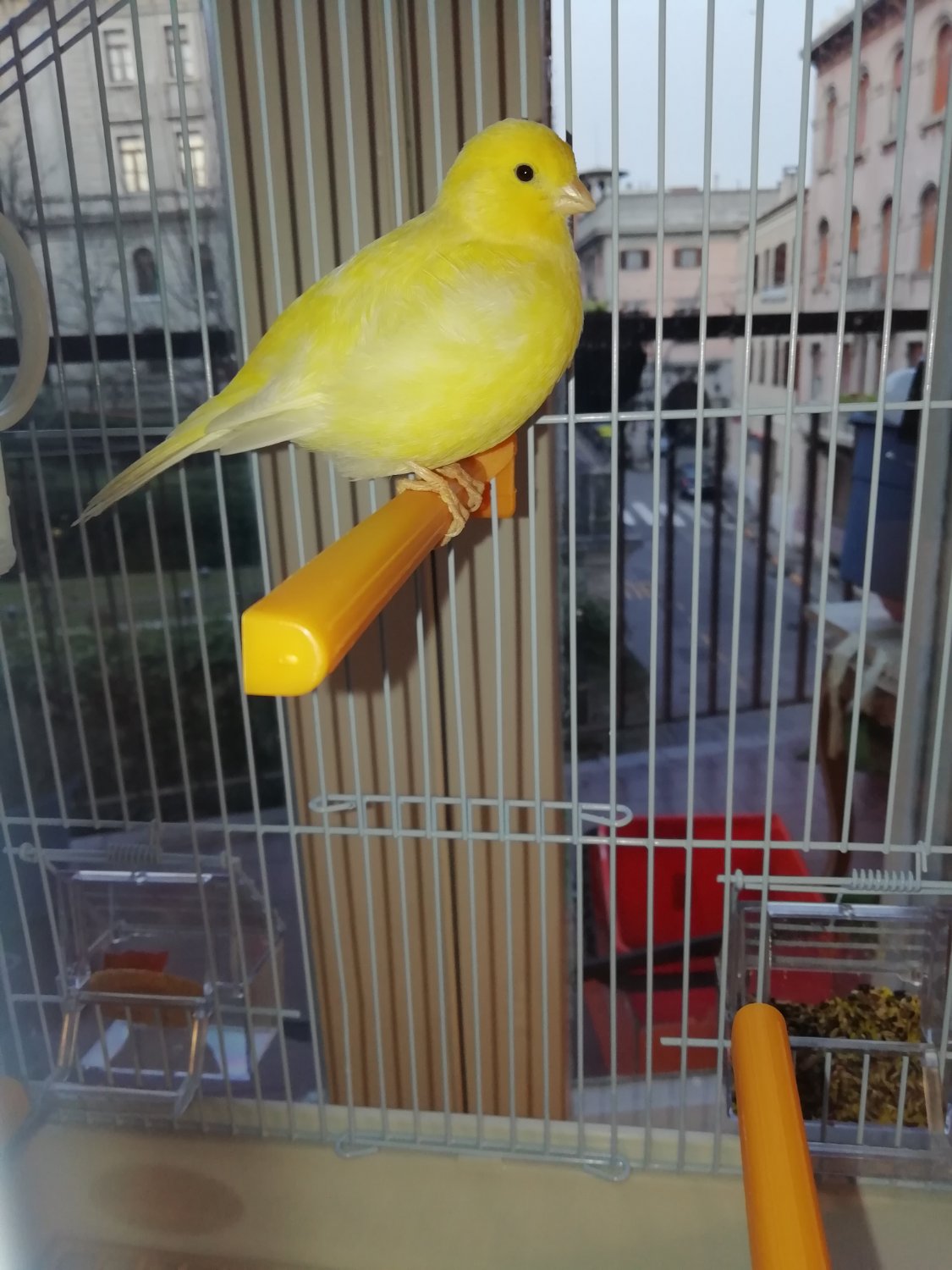 Da poco sono in compagnia di Carlo un canarino giallo.