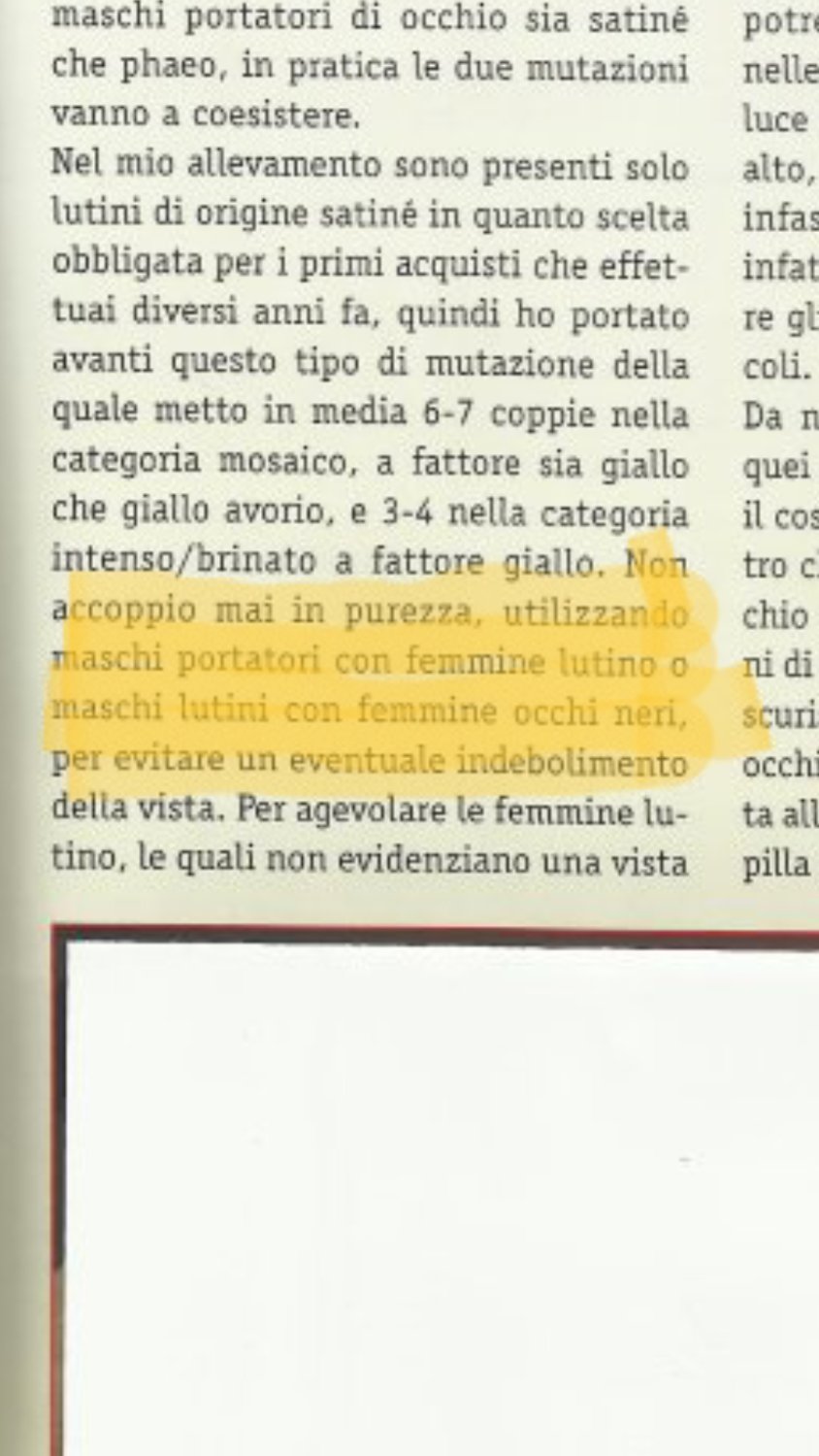 La femmina lutino potrei accoppiarla con un maschio mosaico così otterrò maschi portatori e femmine mosaico giallo.