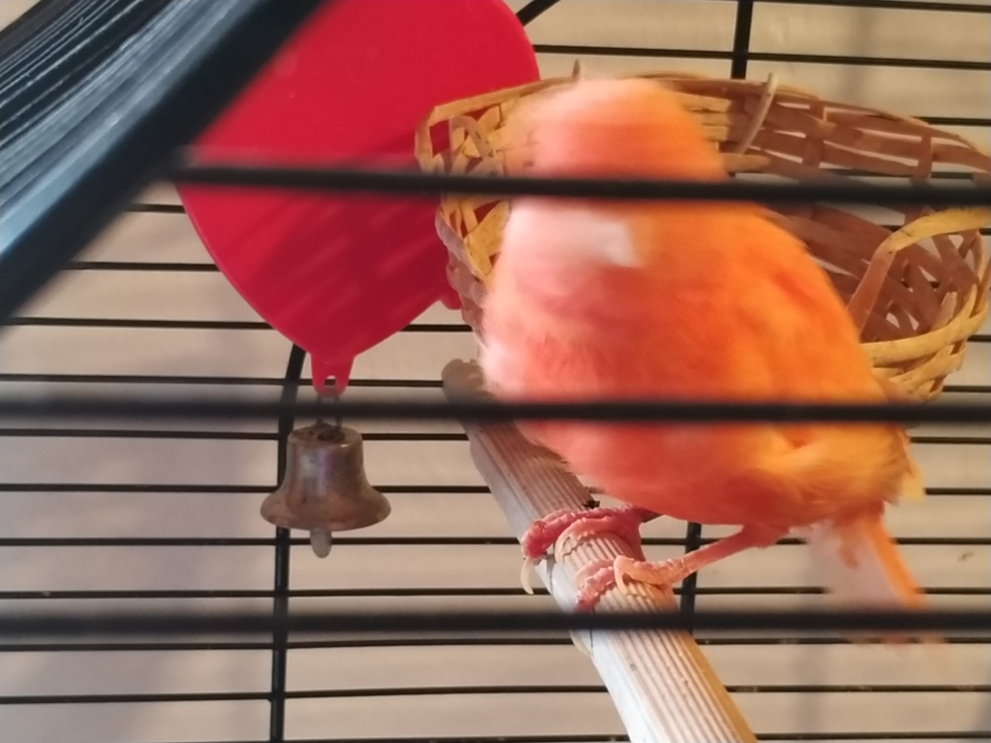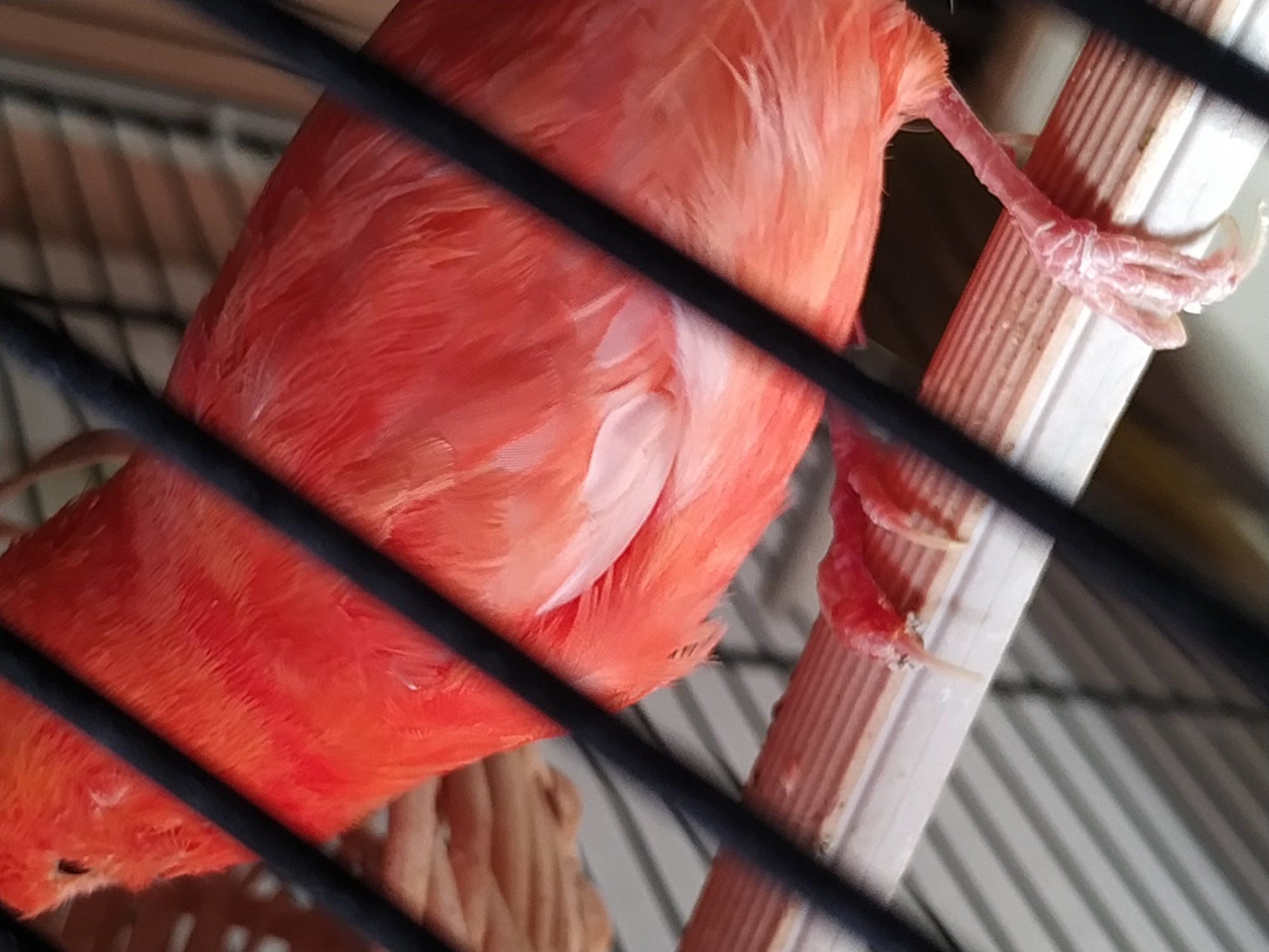 Unica altra cosa strana è che due o tre giorni fa aveva una penna delle ali come piegata in due e alla fine è venuta via. È con un canarino maschio che avevamo già in precedenza e ogni tanto litigano ma niente di particolarmente acceso, il tutto si esaurisce in due "beccate" all'aria.