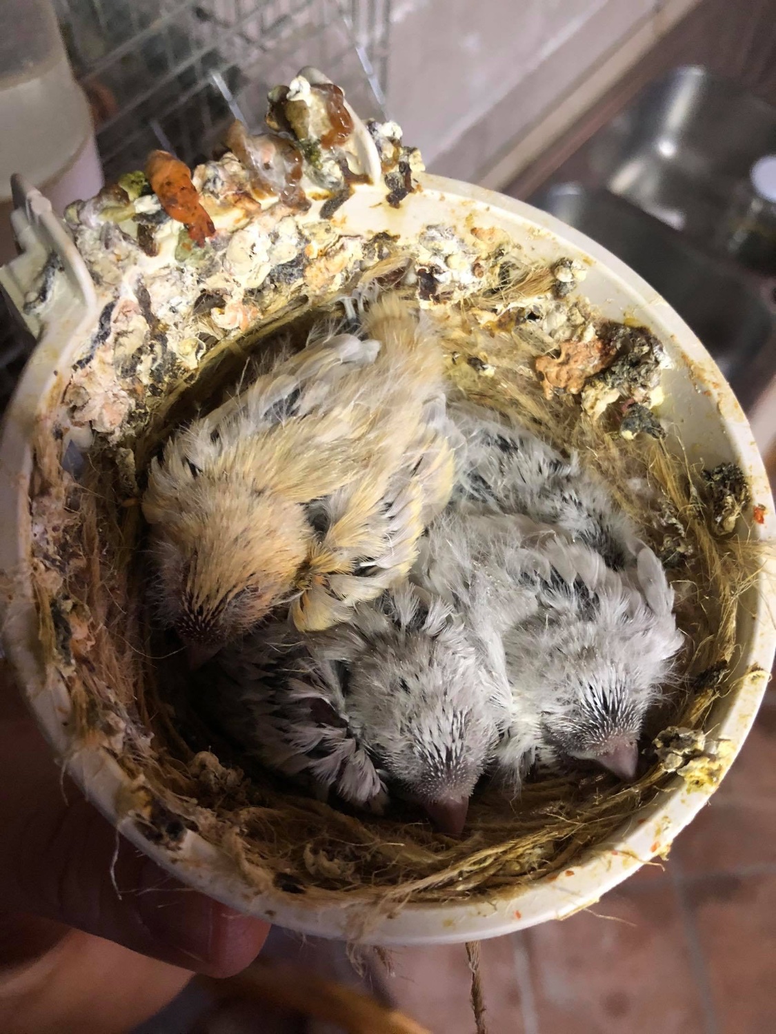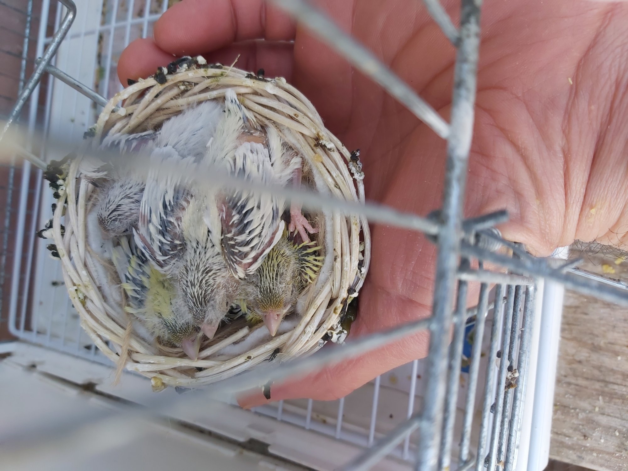 E su una coppia che è formata da padre e figlia nati dal mio allevamento mi sono nati 2 gialli e 2 bianchi...ora vi faccio vedere le foto...
