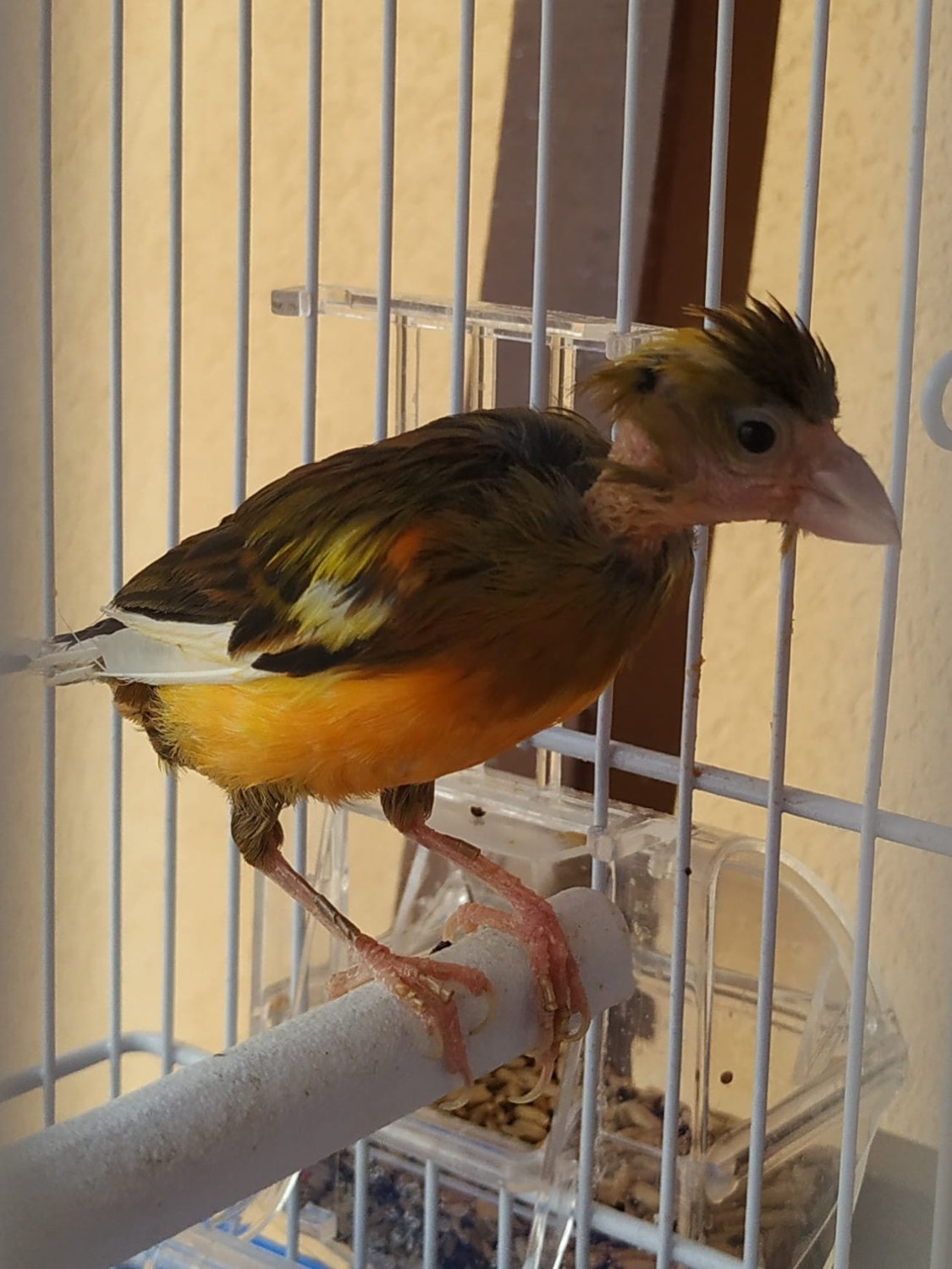 salve a tutti, qualche giorno fa ho comprato a prezzo stracciato questa canarina con la testa ed il collo quasi senza piume proprio perchè non la voleva nessuno ed io volevo aiutarla in qualche modo. in questi giorni, mi sono anche accorto che la canarina aveva dei problemi a mantenersi in equilibrio sul trspolo e a passare anche da un trespolo all'altro. Osservandola più da vicino, ho potuto notare anche che sulle zampette presenta come delle squame, allego foto sotto.