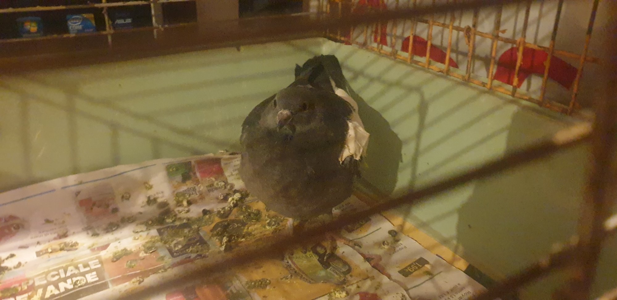 Ciao a tutti! Sono nuova nel forum, 4 giorni fa ho trovato un piccione giovane (credo stesse imparando a volare) con un ala fratturata.. sul fattore cura e alimentazione sono a posto.. unica cosa non si fa avvicinare, sono 4 giorni che la disinfetto e la curo ma scappa e "piange" (non so come si chiami il verso del pullo).. ora vi chiedo.. come faccio a farla abituare a me? Come faccio a non farle avere paura? Sto seduta di fianco a lei e faccio luuunghi discorsi (tanto che il mio fidanzato mi da per pazza ahah).. ma niente da fare.. allego foto di Hato (si le ho anche dato un nome ahah)