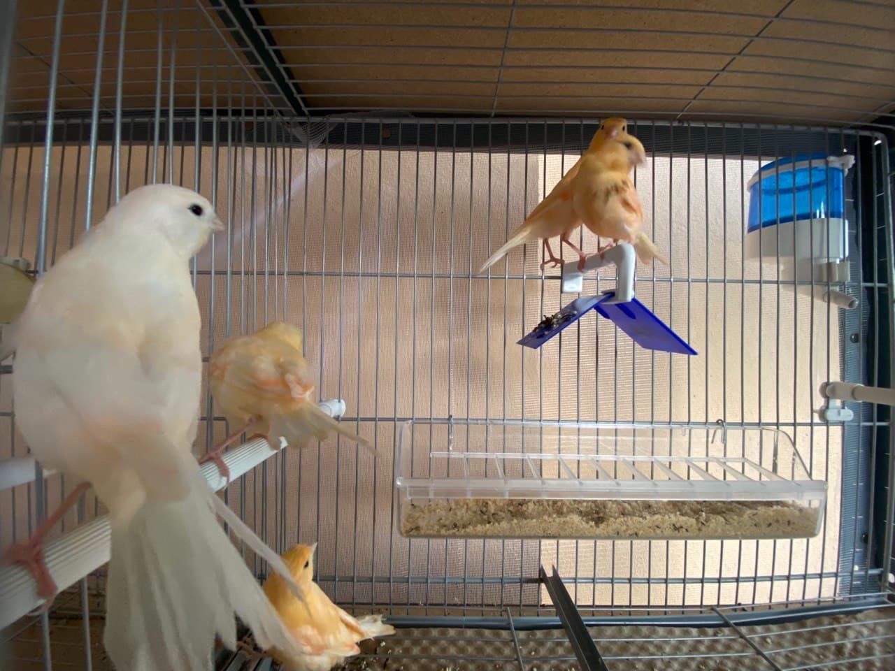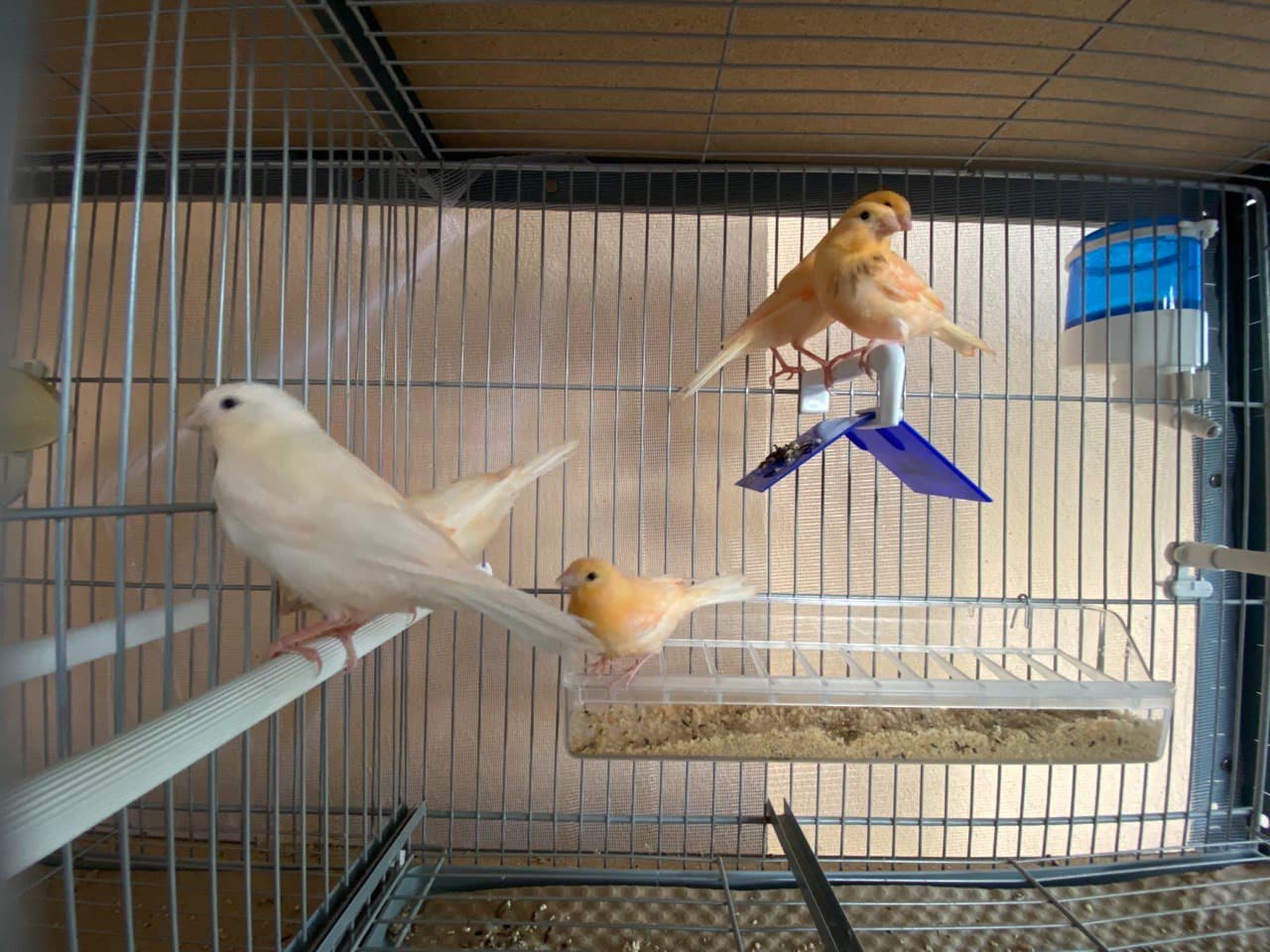 I pulli hanno 33 giorni di vita, li ho divisi dal padre perché ho visto che era un pelo aggressivo con uno di loro, tanto tra qualche giorno sposterò anche il padre in una sua gabbia da 50cm e loro li lascerò in quella da 90 e inizierò a colorarli.