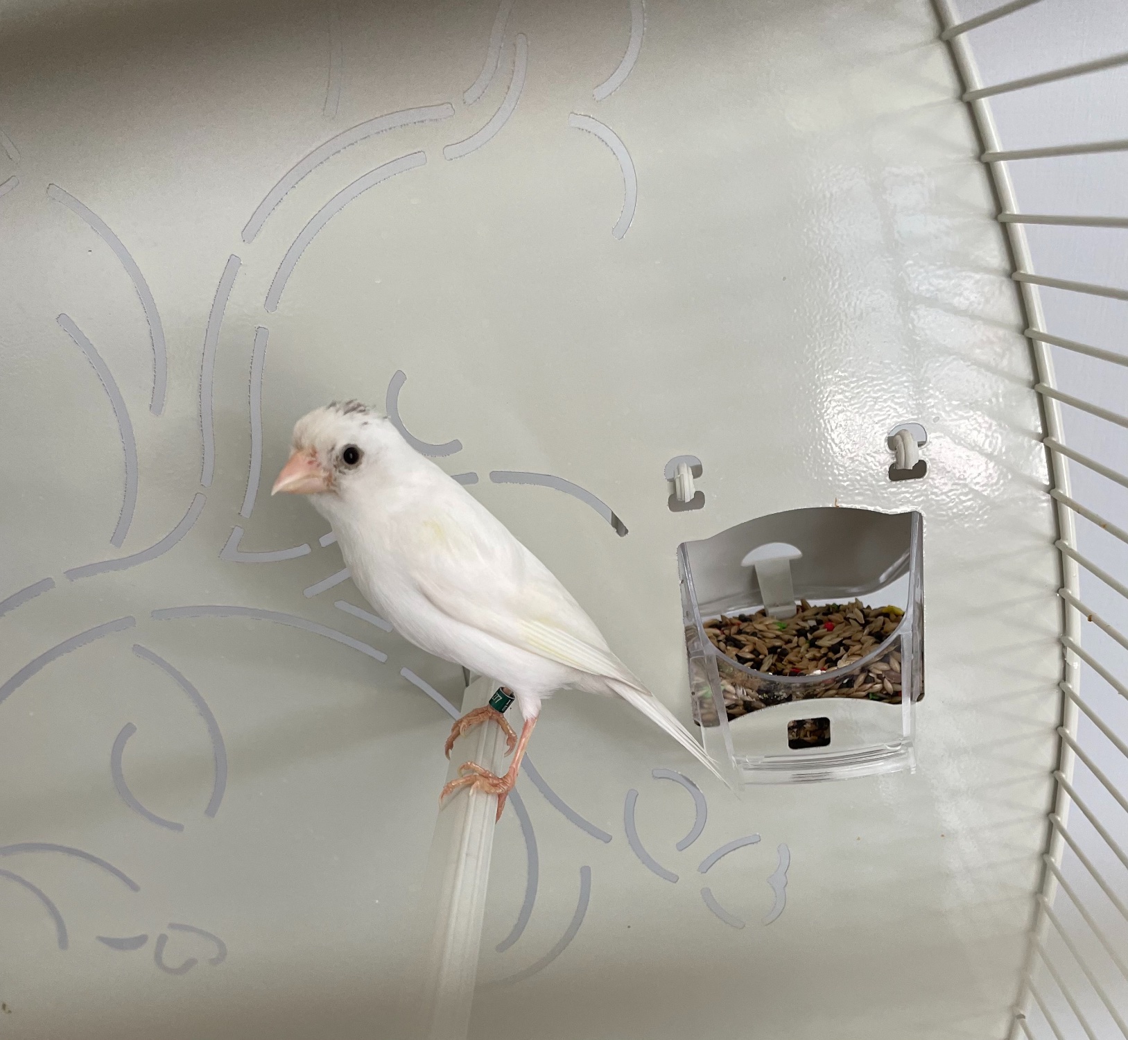 direi un canarino di colore ,varietà bianco recessivo pezzato anno 2020