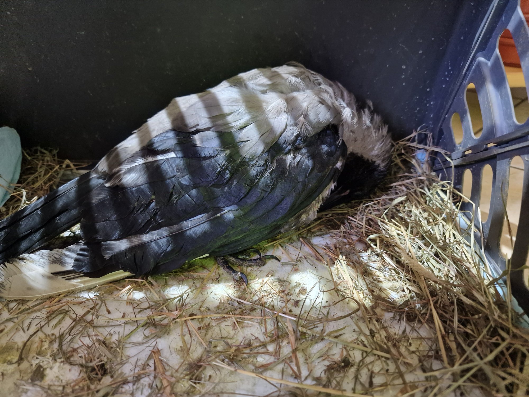Salve a tutti, 2 giorni fa è arrivata una cornacchia grigia nel mio giardino, credo sia un pullo ancora, quando è arrivata l'ho vista arrivare come se fosse ubriaca, le ho dato da mangiare e dell'acqua perché sembrava proprio stesse soffrendo il caldo, ho aspettato un po', ma dato il caldo afoso ho pensato di metterla in una zona più fresca, così l'ho presa come fosse un pappagallo sul dito ed è stata tranquillissima, me la sono portata dentro poiché fuori ci sono circa 5 gatti in giro quindi sarebbe stata in pericolo.
